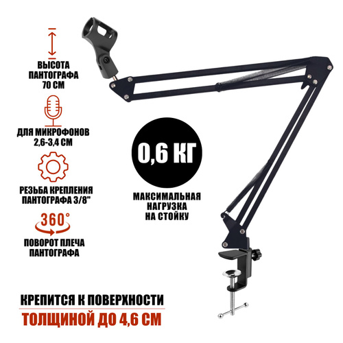 Пантограф для микрофона стойка NB-35 черная / Держатель для микрофона универсальный / Кронштейн подвижный настольный