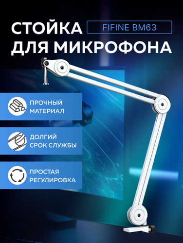 Пантограф для микрофона Fifine Boom Arm BM63 (Белый) стойка для микрофона настольная