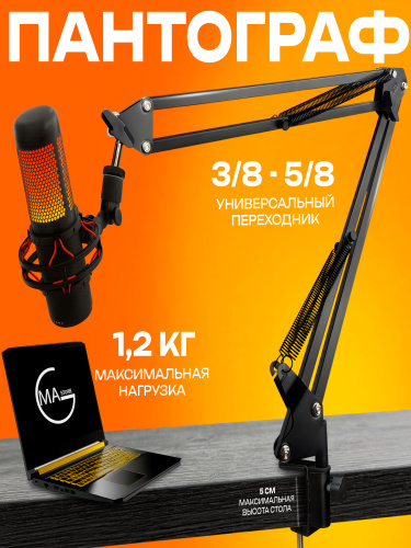 Настольная стойка пантограф, штатив для микрофона с держателем для проводов, с адаптером резьбы 3/8", усиленный, черный