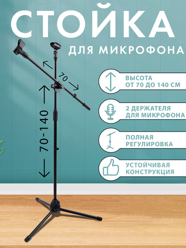 Стойка для микрофона Boom Mic Stand напольная / Стойка для двух микрофонов складная
