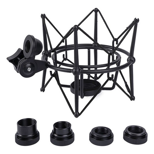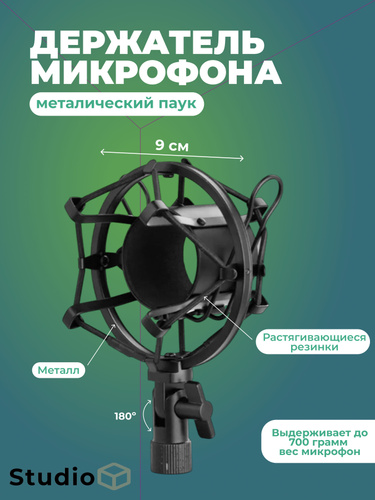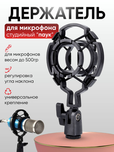 Держатель для микрофона паук на стойку пластиковый противоударный с амортизирующим креплением, резьба 1/8" и 3/8" (8 мм и 15 мм), студийный, игровой (для стриминга), черный
