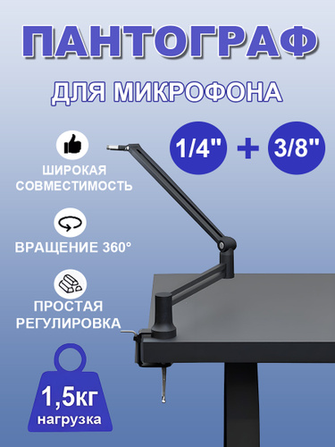 Пантограф для микрофона (Fifine) 5/8 , 3/8" Ridberg Stream MDS09-4 (Черный) стойка для микрофона настольная