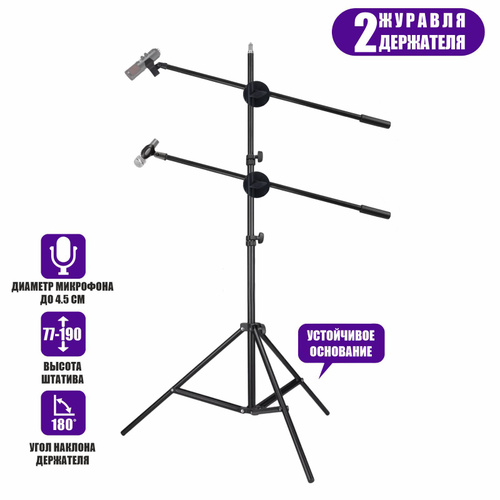 Микрофонная стойка двойной журавль JBDuo-2 с держателем для ручного микрофона и с держателем прищепка