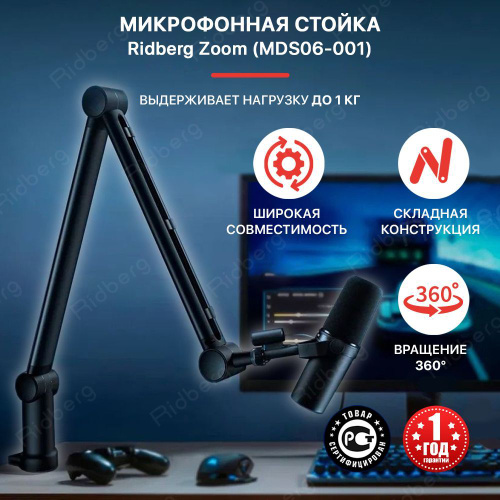 Пантограф / стойка для микрофона / настольная для микрофона компьютера Ridberg Zoom (MDS06-001), (скрытый кабель-менеджмент) для стрима, подкаста, записи звука, стриминга