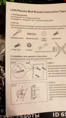 Ребят, не берите. Кронштейн нужен такой, чтобы его установить и повесить телевизор, а тут ещё доделывать надо. Металл достаточно тонкий где-то 1-1,5 мм, но ладно, выдержит. Ограничителей влево-вправо нет, если какой ребёнок начнёт двигать, то может слететь. Про нижние винты тут уже писали в отзывах, что под них резьба не нарезана. в принципе, это ерунда... Читать полностью