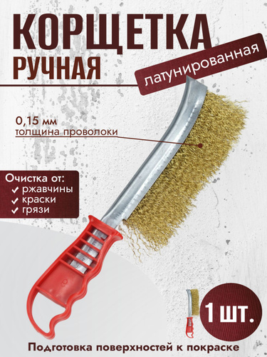 Корщетка ручная из стальной латунированной витой проволоки 0,15мм красная 1шт