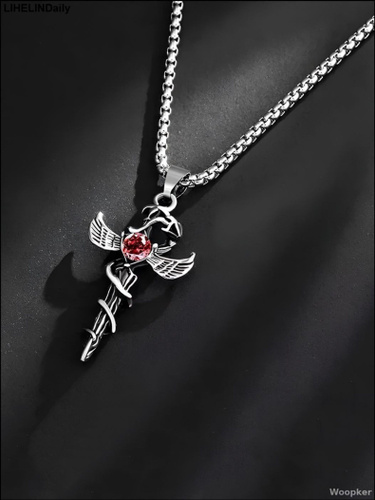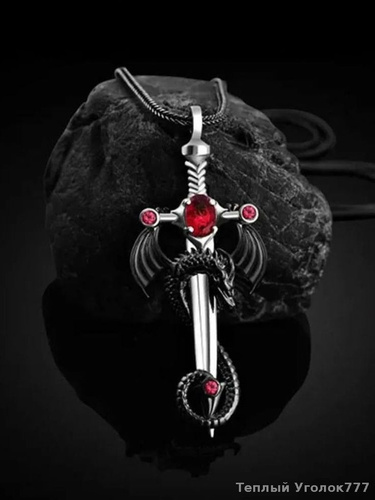 Подвеска "Меч драконов с красным камнем" на цепочке / со змеей