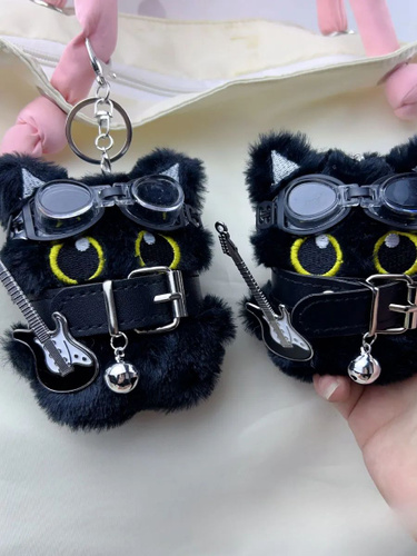 Киберпанк-подвеска 'Чёрный кот' Крутой брелок с большими глазами, стильный аксессуар для рюкзака или сумки