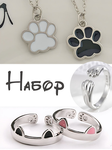Набор парные кольца и цепочки. Бижутерия, украшение для девочек и подростков, детское колечко на палец, кольцо женское, цепочки с подвесками и кулон на шею