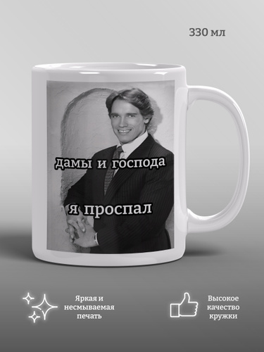 Кружка Дамы и господа я проспал, подарок, прикол, мем, керамика, 330мл