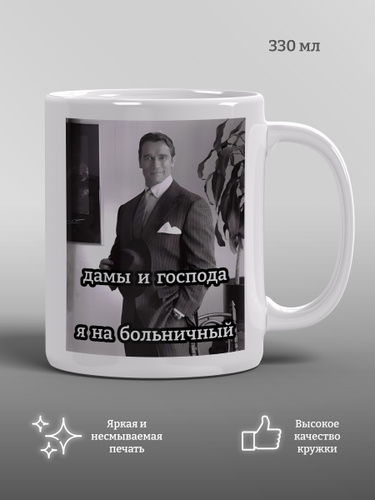 Кружка Дамы и господа, я на больничный, прикол, подарок, мем, 1 шт, 330 мл