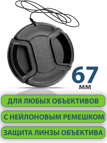 Универсальная крышка для объектива 67mm / Защитная крышка для фотоаппарата 67 мм (со шнурком)