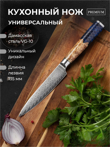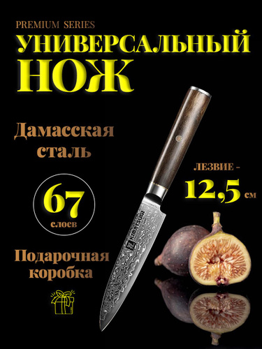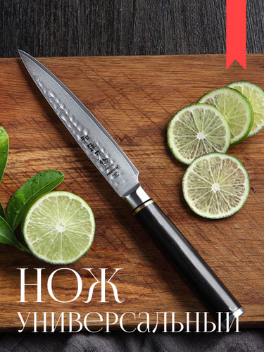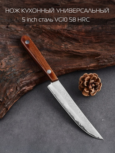 Универсальный кухонный нож из дамасской стали 12,5 см с чехлом