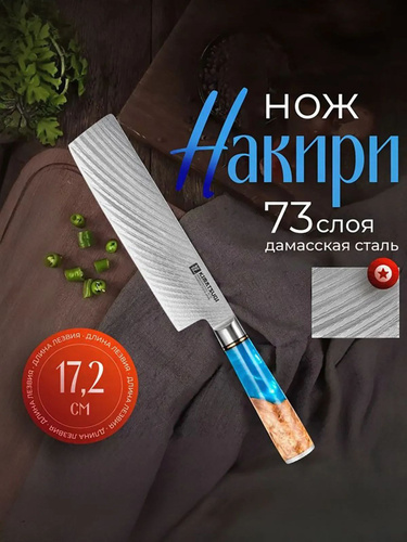 Kimatsugi / Японский кухонный поварской нож Накири Damascus #121 в подарочном наборе. Настоящая дамасская сталь 73 слоя. VG-10 в обкладках. В подарочной коробке