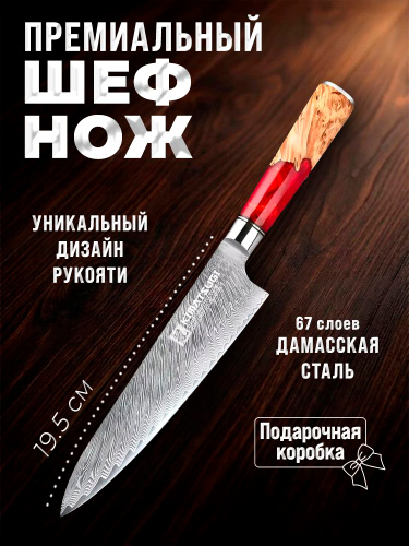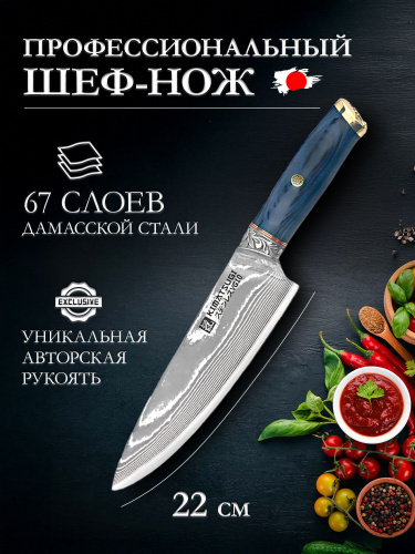 Kimatsugi / Японский кухонный Шеф нож Damascus #120. Настоящая дамасская сталь 67 слоев. VG-10 в обкладках. Длина лезвия 22 см. В подарочной коробке
