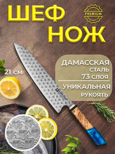 Кухонный нож HEZHEN из дамасской стали