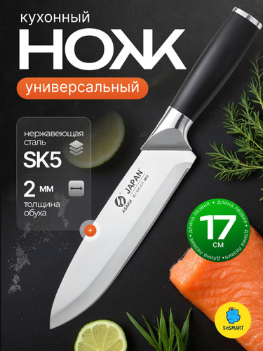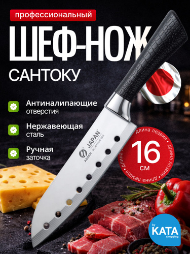 Кухонный поварской универсальный нож САНТОКУ из нержавеющей стали 2 мм, длина лезвия 16 см