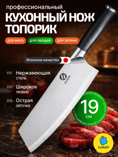 Нож кухонный поварской ТОПОРИК универсальный из нержавеющей стали 2 мм, длина лезвия 19 см