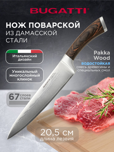 Нож кухонный поварской Bugatti Pakka из дамасской стали