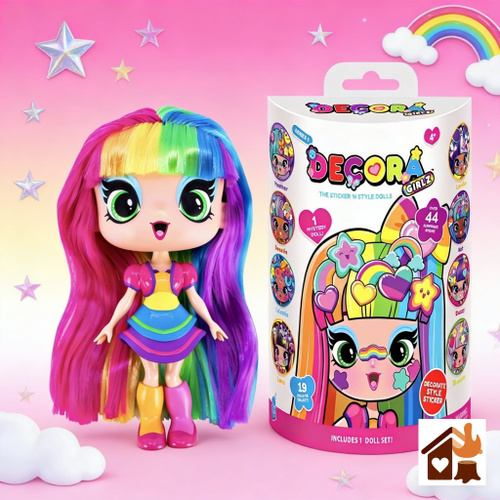 Кукла Decora Girlz с радужными волосами (12,7 см), с наклейками и аксессуарами