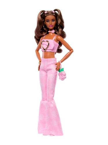 Кукла Barbie Deluxe Style с каштановыми волосами в расклешенных джинсах