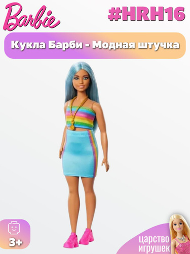 Кукла Barbie из серии Модницы Барби с голубыми волосами в радужном платье, HRH16