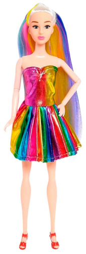 Детская модельная кукла "Радужный стиль" в разноцветном платье, шарнирная с подвижными руками и ногами, пластиковая куколка для девочки, длинные разноцветные волосы для причёсок, высота 29 см