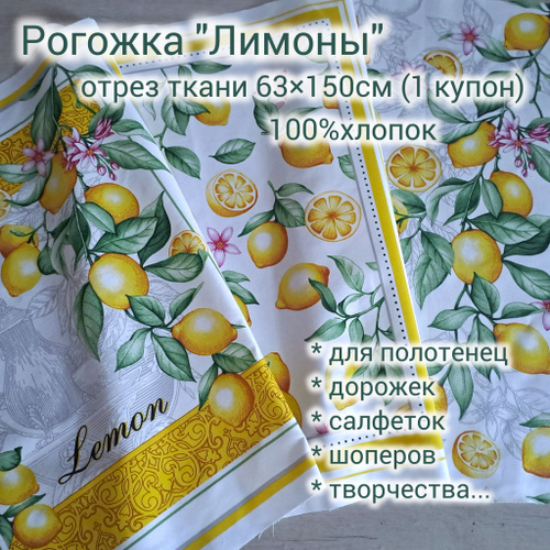 Рогожка "Лимоны" отрез ткани 1купон, хлопок 100%