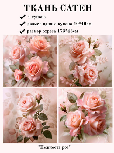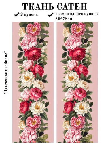 Ткань Сатен "Цветочное изобилие" 2 купона 24*78см