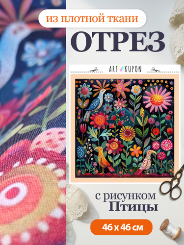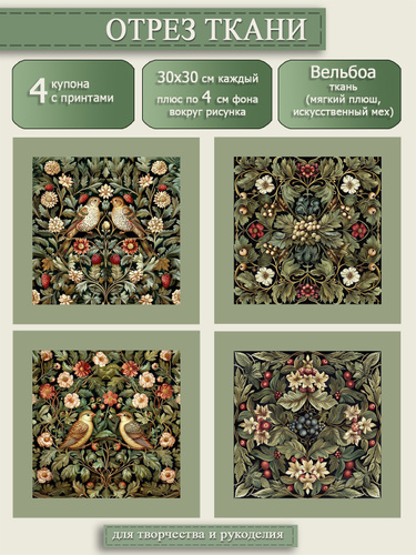 Отрез ткани вельбоа/плюш для рукоделия, Птицы, 4 купона