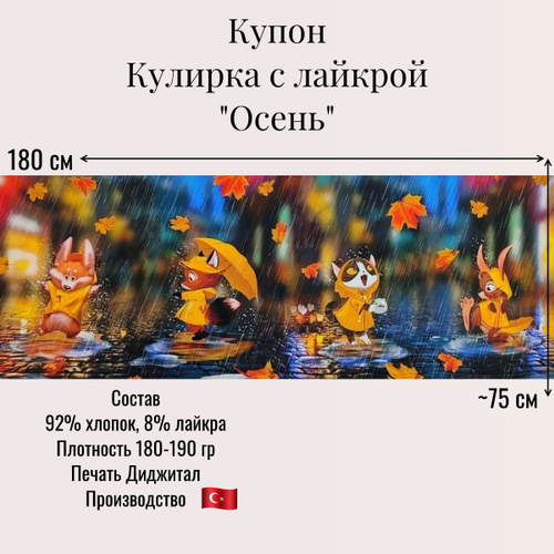 Ткань для шитья Трикотаж Кулирка с лайкрой Купон/0.80(+/-2 см) х 1.8 м