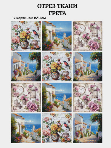 Мини-купоны ткани ГРЕТА для пэчворка и шитья 12шт "Пейзажи и цветы"