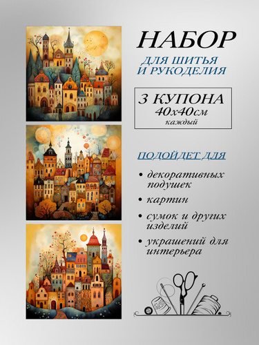 Отрез ткани, купоны для рукоделия "Сказочный город"