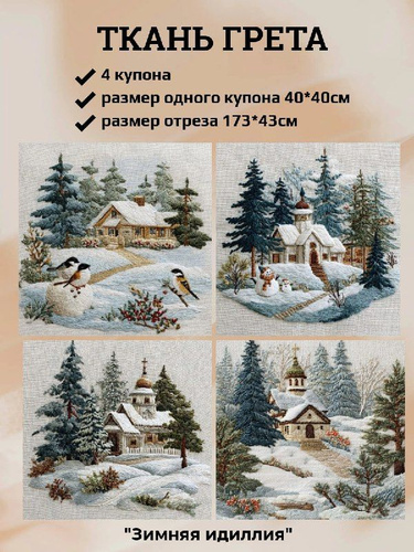 Ткань Грета с хлопком, "Зимняя идиллия" отрез 43*173см , 4 купона 40*40см