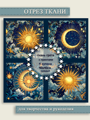 Отрез ткани Грета для рукоделия, Солнце и Луна, грета, 4 купона / набор для шитья