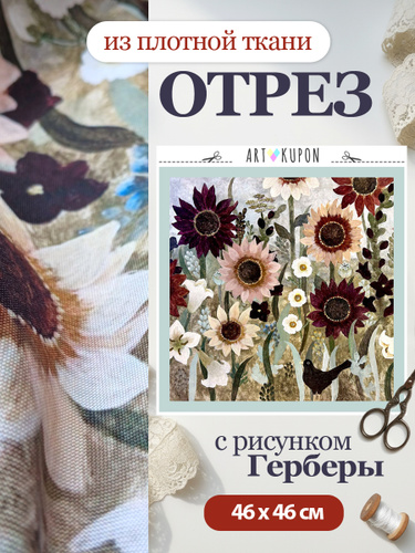 Ткань для рукоделия Герберы с цветочным принтом, отрез купон для шитья