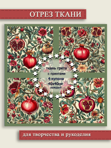 Отрез ткани для рукоделия, Гранат, 4 купона/набор для творчества/необычный подарок