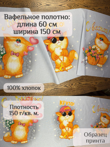 Вафельное полотно отрез 60 см ширина 150 см 8 Марта