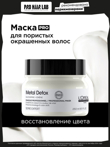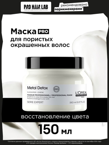 L'Oreal Professionnel Профессиональная маска для восстановления окрашенных волос Metal Detox, 150 мл