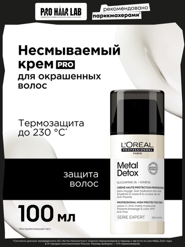 L'Oreal Professionnel Профессиональный несмываемый крем для кончиков волос с термозащитой Metal Detox с Гликоамином, 100 мл