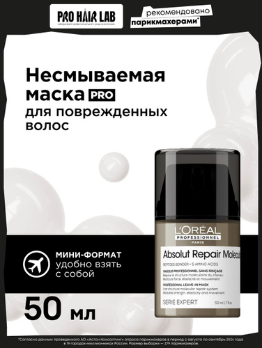 L'Oreal Professionnel Профессиональная несмываемая маска Absolut Repair Molecular для молекулярного восстановления волос, 50 мл