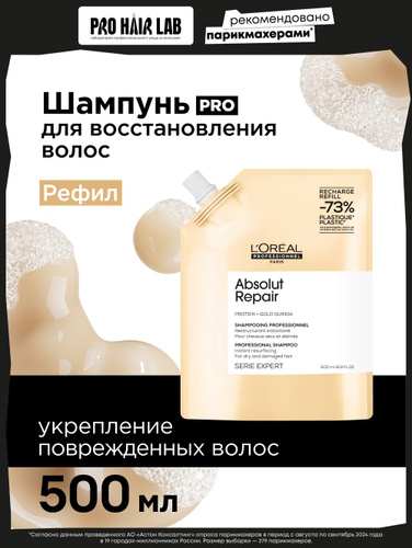 L'Oreal Professionnel Профессиональный шампунь Absolut Repair для поврежденных волос, сменный блок, 500 мл