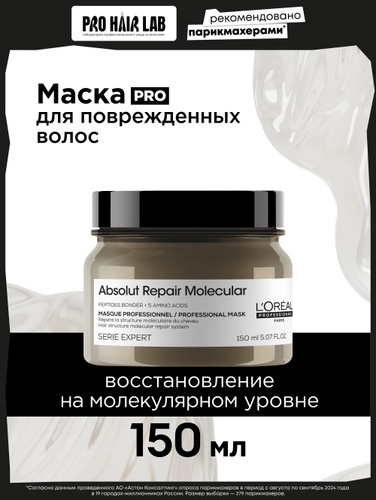 L'Oreal Professionnel Профессиональная маска для молекулярного восстановления волос Absolut Repair Molecular, 150 мл