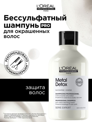 L'Oreal Professionnel Профессиональный шампунь для восстановления окрашенных и осветленных волос Metal Detox, 300 мл