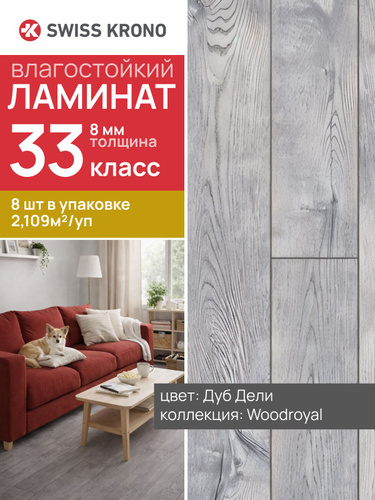 Ламинат напольный влагостойкий 8 мм 33 класс V4 Kronostar Woodroyal Дуб Дели