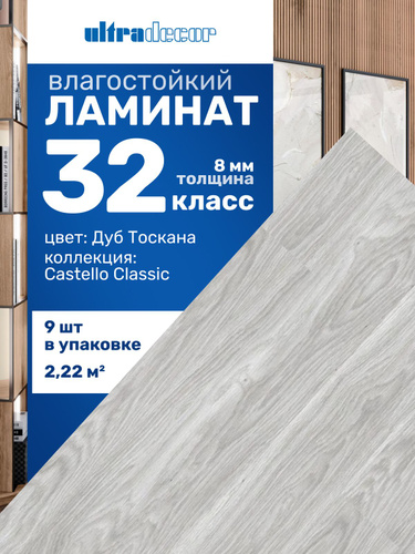 Ламинат напольный влагостойкий 8 мм 32 класс Ultradecor Castello Classic Дуб Тоскана
