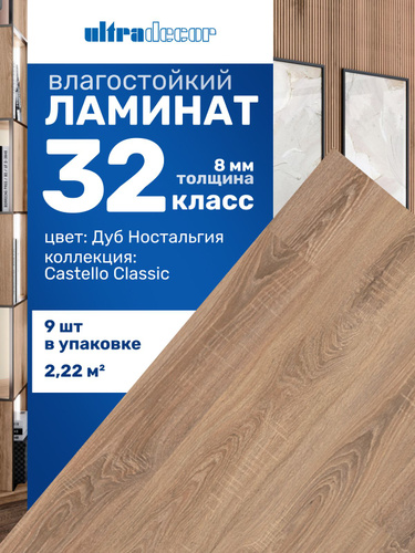 Ламинат напольный влагостойкий 8 мм 32 класс Ultradecor Castello Classic Дуб Ностальгия