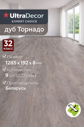 УЛЬТРАДЕКОР Expert Choice ламинат дуб Торнадо (9шт) (2,22кв.м.) 1285х192х8мм / ULTRADECOR