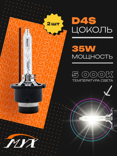Ксеноновые лампы для автомобиля штатный ксенон MYX Light цоколь D4S, питание 12V, мощность 35W, температура света 5000K, пластиковый цоколь, комплект 2шт.