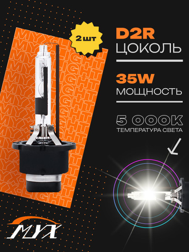 Ксеноновые лампы для автомобиля штатный ксенон MYX Light цоколь D2R, питание 12V, мощность 35W, температура света 5000K, пластиковый цоколь, комплект 2шт.